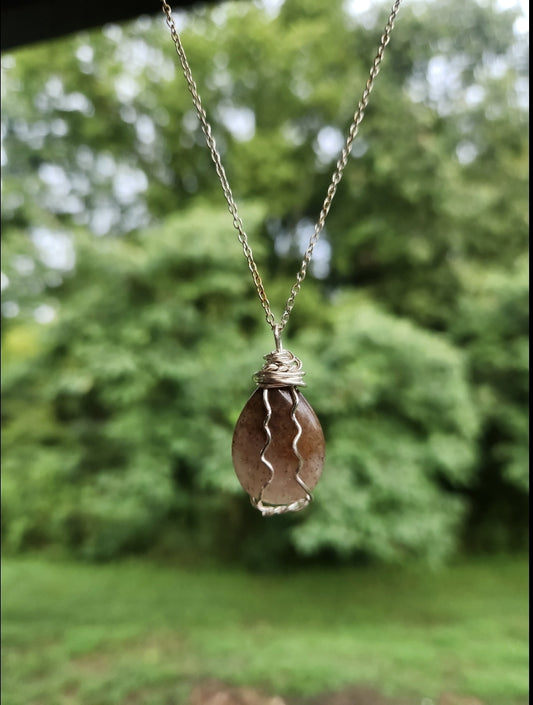 Teardrop Agate Wire Wrapped Pendant Necklace