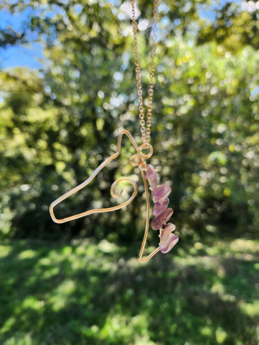 Amethyst Horse Wire and Gemstone Sculpted Necklace
